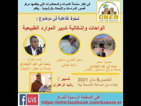 مركز قصور للدراسات والأبحاث بالرشيدية. ندوة علمية بعنوان: الواحات وإشكالية تدبير الموارد الطبيعية